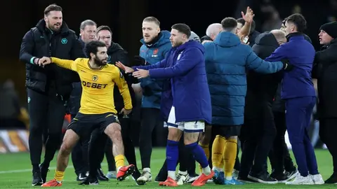 فقد مدافع نادي وولفرهامبتون الإنجليزي، الجزائري ريان آيت نوري أعصابه بعد نهاية المباراة التي خسرها فريقه بهدفين مقابل هدف، حيث دخل في شجار مع بدلاء فريق إيبسويتش تاون، السبت، ضمن منافسات الأسبوع الـ 16 من “البريمييرليغ”، الأمر الذي كلفه الطرد في مشهد مؤسف.