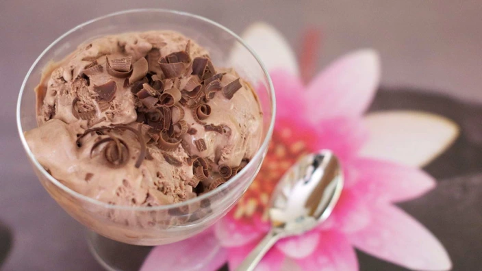- نسكب الآيس كريم في أكواب ونزينها برقائق الشوكولاتة.