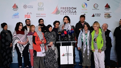 وحضر المؤتمر الصحفي الذي جرى على متن السفينة، ناشطون من دول عدة، بينها ألمانيا وماليزيا وفلسطين والنرويج والأرجنتين وإسبانيا وكندا وجنوب أفريقيا.