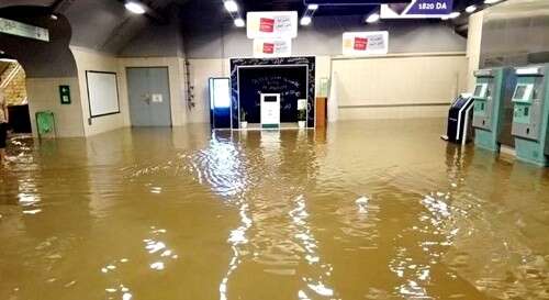 المياه الجارفة غمرت مداخل الميترو والمدرج العلوي للمحطة الجديدة بالمطار الدولي هواري بومدين