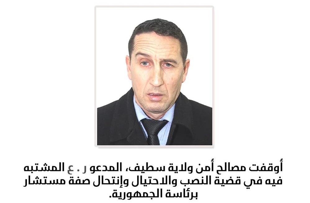 أعلنت مصالح أمن ولاية سطيف عن توقيف المدعو “ر.ع” المشتبه فيه في قضية النصب والاحتيال وانتحال صفة مستشار برئاسة الجمهورية.