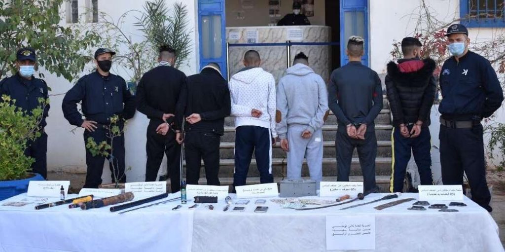 وأوضح البيان أن مصالح الأمن، ممثلة في فرقة الشرطة القضائية لأمن المقاطعة الإدارية بئر توتة، تمكنت من “توقيف 4 أشخاص مشتبه فيهم، في قضية إنشاء، الانخراط والمشاركة في عصابة أحياء لغرض إحداث جو من انعدام الأمن في أوساط الأحياء السكنية وزرع الرعب في نفوس الغير مع تعريض حياتهم للخطر تحت طائلة التهديد بالكلاب الشرسة وكذا حيازة المخدرات (القنب الهندي)، المخدرات الصلبة (اكستازي) والمؤثرات العقلية بطريقة غير شرعية لغرض المتاجرة وحيازة أسلحة بيضاء محظورة”.