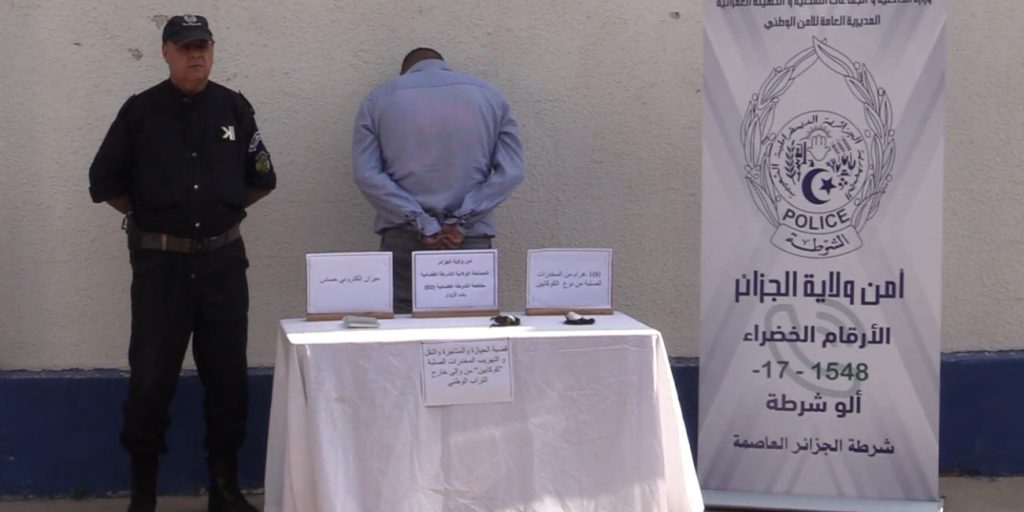 وجاء في بيان لامن ولاية الجزائر، ان “مصالحها، ممثلة في فرقة مكافحة الاتجار غير المشروع بالمخدرات والمؤثرات العقلية بالمقاطعة الثانية للشرطة القضائية بباب الزوار، أوقفت شخصا مشبوها في حالة تلبس، يبلغ من عمر 44 سنة، ينحدر من ولاية الجزائر وذلك على مستوى مدخل المطار الدولي هواري بومدين بالعاصمة، عن قضية الحيازة، المتاجرة، النقل والتهريب للمخدرات الصلبة كوكايين من و إلى خارج التراب الوطني”.