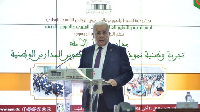 جاء ذلك خلال اليوم البرلماني الموسوم بعنوان “مدارس أشبال الأمة: تجربة وطنية نموذجية لإلهام وتطوير المدارس الوطنية” الذي نظم بقاعة المجاهد يوسف الخطيب، حيث قال بوغالي في كلمته إن الجزائر أولت التعليم مكانة استراتيجية منذ الاستقلال، وجعلت من مجانيته وإجباريته مبدأً راسخًا، إدراكًا منها لدوره في التنمية الاقتصادية والاجتماعية. وأضاف أن مدارس أشبال الأمة تجسّد نموذجًا مميزًا في تكافؤ الفرص والتميز والانضباط، إذ تفتح أبوابها لكل أبناء الوطن وفق معيار التفوق والكفاءة، وتسهم في إعداد جيل متشبّع بالروح الوطنية، متمسّك بهويته، ومؤمن برسالة الشهداء والمجاهدين. وأوضح رئيس المجلس الشعبي الوطني أن هذه المدارس تستمد فلسفتها من “مدرسة أشبال الثورة”، التي أنجبت جيلًا آمن بالوطن والحرية، لتواصل اليوم رسالتها في ثوب عصري يستجيب لتحديات العصر، ويجمع بين الأصالة والانخراط في التطور التكنولوجي. وأشاد بوغالي بجهود وزارة الدفاع الوطني في مجال التربية والتكوين، معتبرًا أن المؤسسة العسكرية تمثل نموذجًا في الانضباط وإعداد الرجال، مؤكدًا أن التجارب الناجحة يجب أن تُعمَّم على باقي المؤسسات التعليمية. كما دعا إلى تكامل الرؤى بين وزارة الدفاع ووزارة التربية والأكاديمية الجزائرية للعلوم وسائر الفاعلين في الحقل التربوي، من أجل بلورة سياسة تعليمية شاملة تضع تربية النشء في صدارة أولويات الدولة. وختم رئيس المجلس كلمته، بالتأكيد على أن تربية الأجيال رهان وطني مقدس، وأن كل الجهود يجب أن تتوحد لضمان مستقبل واعد وآمن للجزائر، مكرّرًا بيت الشعر الخالد: يا نشء أنت رجاؤنا وبك الصباح قد اقترب***خذ للحياة سلاحها وخض الخطوب ولا تهب.