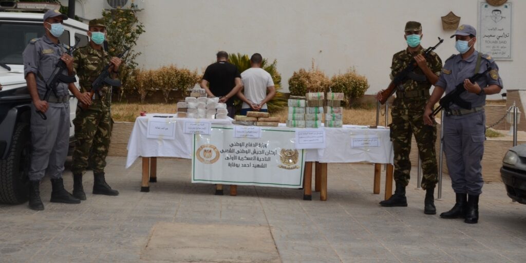 كشفت وزارة الدفاع الوطني، عن إحباط إدخال 10 قناطير و38 كيلوغراما من الكيف المعالج، مع ضبط 69 كيلوغرام و515 غرام من مادة الكوكايين، بالإضافة إلى 524 486 قرصا مهلوسا، خلال الأسبوع الأخير عبر الحدود مع المغرب.