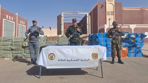 كما تم حجز شاحنة استعملت في التهريب، حيث تم ضبط المحجوزات على متنها معبأة في علب كرتونية.