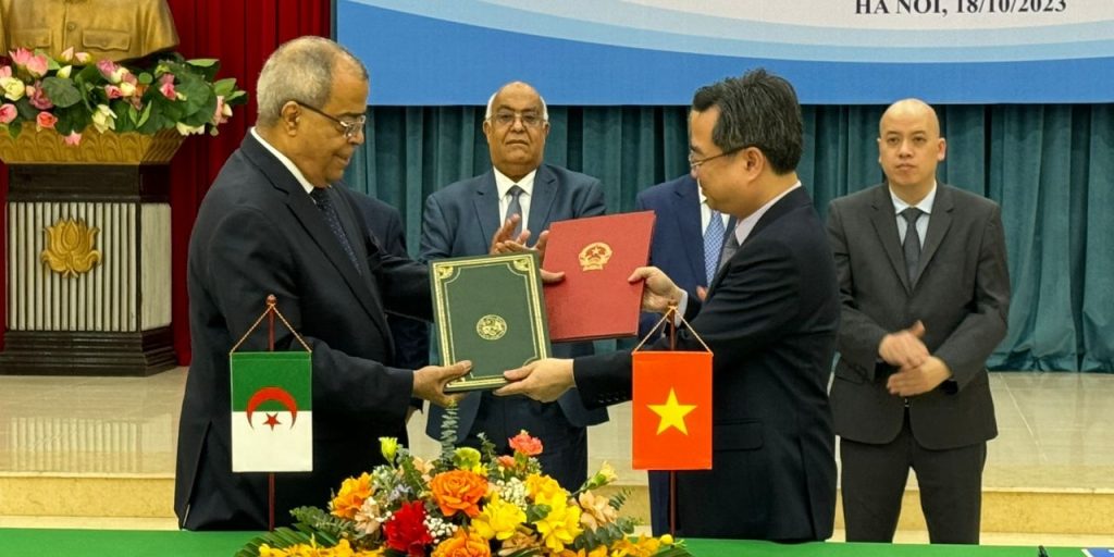 أشرف وزير الصناعة والإنتاج الصيدلاني,علي عون, يوم الاربعاء بهانوي (فيتنام), رفقة وزير البناء الفيتنامي, نغوين ثانه نغي، على اختتام أشغال الدورة ال12 للجنة المشتركة الجزائرية-الفيتنامية التي توجت بتوقيع مذكرة تفاهم في مجال الصناعة الصيدلانية, حسبما أفاد به بيان للوزارة.