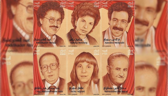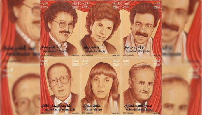 وتسلط هذه السلسلة من الطوابع البريدية، الضوء على نخبة من نساء ورجال الركح الجزائري، الذين شكلوا بأعمالهم ومواقفهم لبنات أساسية في صرح الفن الرابع بالجزائر، ومن بينهم محيي الدين بشطارزي، رائد المسرح الجزائري ومؤسس بنيته التحتية، عائشة عجوري (كلثوم)، إحدى أوائل أيقونات الأداء النسوي على الخشبة”.