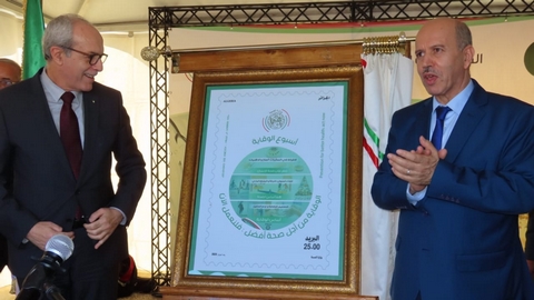 أشرف وزير الصحة عبد الحق سايحي, رفقة وزير البريد والاتصالات السلكية واللاسلكية, كريم بيبي تريكي, اليوم الأربعاء بالجزائر العاصمة, على مراسم اصدار طابع بريدي بمناسبة الأسبوع الوطني للوقاية.