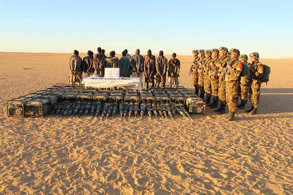 من جهة أخرى، وفي إطار محاربة الجريمة المنظمة، أوقفت مفارز للجيش الوطني الشعبي إثر عمليات متفرقة بكل من تمنراست وبرج باجي مختار/ن.ع.6 وجانت/ن.ع.4، (32) منقبا عن الذهب ومهربين (02) اثنين وضبطت (05) شاحنات ومركبتين (02) رباعيتي الدفع و(91) مولدا كهربائيا و(46) مطرقة ضغط و(14000) لتر من الوقود و(11,164) طن من خليط الحجارة وخام الذهب وأغراضا أخرى.