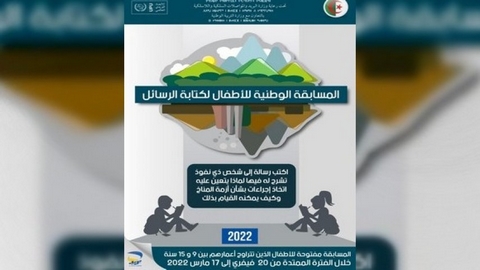 كشفت وزارة البريد والمواصلات السلكية واللاسلكية، عن تنظيم والتعاون مع وزارة التربية الوطنية، المسابقة الوطنية للأطفال لكتابة الرسائل “طبعة 2022” والتي موضوعها “أكتب رسالة إلى شخص ذي نفوذ تشرح له فيها لماذا يتعين عليه اتخاذ إجراءات بشأن أزمة المناخ وكيف يمكنه القيام بذلك”، وذلك تحضيرا لمشاركة الجزائر في المسابقة الدولية للأطفال لكتابة الرسائل المنظمة من طرف الاتحاد البريدي العالمي في نسختها الـ51.