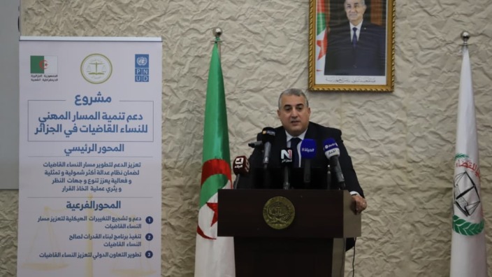 أطلقت وزارة العدل بالتعاون مع برنامج الأمم المتحدة الإنمائي، الأربعاء، بالمدرسة العليا للقضاء بالقليعة (ولاية تيبازة), مشروع دعم تنمية المسار المهني للنساء القاضيات في مرحلته الثانية.