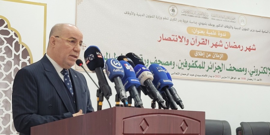كما شهدت الندوة الإعلان عن إطلاق مصحف الجزائر بالخط المبسوط، وهو أول مصحف يُطبع بالخط الجزائري الأصيل، ليكون مرجعًا دينيًا وتراثيًا يعكس الهوية الجزائرية. وأشار الوزير بلمهدي، إلى أن هذا المصحف يُعدّ إضافة قيّمة للمكتبة الإسلامية الجزائرية، حيث تمت طباعته وفق أعلى معايير الجودة، وبشكل يُبرز جمال الخط العربي المبسوط المستخدم في الجزائر، مؤكدًا أن هذا المشروع جاء برعاية كريمة من رئيس الجمهورية، في إطار الجهود المتواصلة لخدمة القرآن الكريم ونشره بأساليب حديثة تعزز الهوية الوطنية. وشدد بلمهدي، على أن هذا المصحف يمثل رمزية خاصة لثورة التحرير المباركة، التي كانت جزءًا من نضال الجزائريين للحفاظ على دينهم وهويتهم الإسلامية، معتبرًا أن الاهتمام بالقرآن الكريم وطباعة مصحف جزائري متميز يعكس استمرار هذا المسار الحضاري والروحي للأمة الجزائرية.