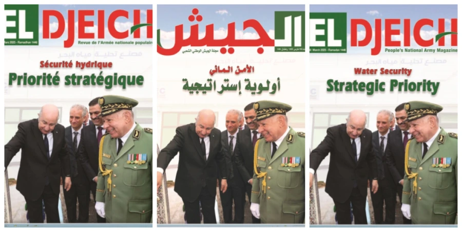 وفي هذا السياق، استعرضت الافتتاحية كلمة الفريق أول السعيد شنقريحة، الوزير المنتدب لدى وزير الدفاع الوطني، رئيس أركان الجيش الوطني الشعبي، خلال مراسم تنصيب القائد الجديد للقوات الجوية في 23 فبراير 2025. حيث شدد على أهمية الدبلوماسية العسكرية في تعزيز التعاون الدولي ومواجهة التحديات الأمنية الناجمة عن التحولات الجيوسياسية في المنطقة. وأكدت المجلة، أن هذه الجهود تأتي في إطار رؤية استراتيجية تهدف إلى تطوير القدرات الدفاعية للجزائر، بما يضمن حماية سيادتها وتعزيز استقرارها الداخلي والإقليمي.