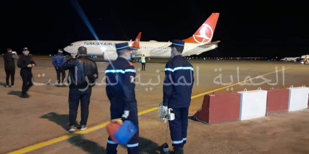 حيث تلقت مصالح الحماية المدنية النداء من برج المراقبة مفاده هبوط إضطراري بمطار تمنراست أقنار – حاج باي أخاموك لطائرة من نوع BOEING 737 MAX B تابعة للخطوط الجوية التركية متوجهة من تركيا الى دولة الكاميرون على متنها ضحية تعاني من توقف قلبي رئوي .