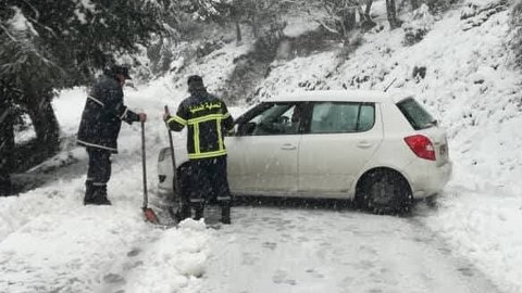 وتدخل أعوان الحماية المدنية التابعون لوحدة عين الحمام لمساعدة الأشخاص العالقين بإزالة الثلوج حول المركبة، بحسب المصدر ذاته.