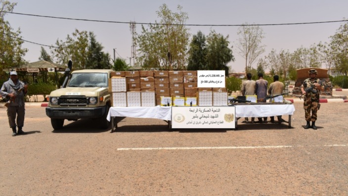 تمكنت مفارز مشتركة للجيش الوطني الشعبي بإقليم القطاع العملياتي شمالي-شرق إن أمناس (الناحية العسكرية الرابعة)، يوم الجمعة، من توقيف ثلاثة أشخاص مسلحين من جنسية أجنبية مع حجز أزيد من 2ر1 مليون قرص مهلوس، حسب ما أورده يوم السبت بيان لوزارة الدفاع الوطني.