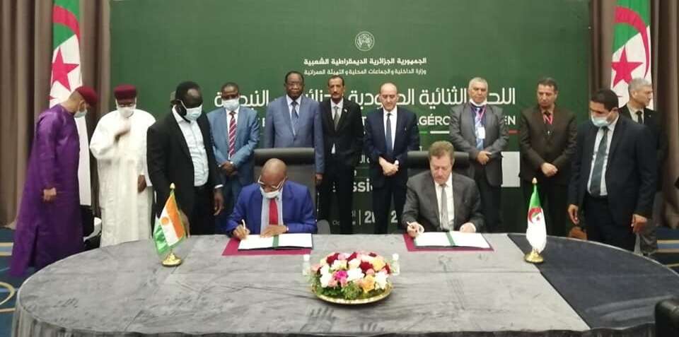 وخلال الاجتماع تم التوقيع على مشروع اتفاق في المجال الأمني، ومشروع توأمة بين مدرسة الشرطة بتمنراست ومدرسة التكوين الشرطي بأغاديز (النيجر)، ومشروع اتفاق تعاون لا مركزي بين ولاية عين قزام ومنطقة أغاديز. وجرت مراسيم التوقيع تحت إشراف وزير الداخلية والجماعات المحلية والتهيئة العمرانية، كمال بلجود، ونظيره النيجري، ألكاش ألهادا. وتوجت أشغال الدورة السابعة للجنة الحدودية الجزائرية-النيجرية، بالمصادقة على جملة من التوصيات من شأنها تعزيز التعاون والتنسيق بين البلدين في شتى المجالات. وتمثلت التوصيات التي قرأها وزير الداخلية والجماعات المحلية والتهيئة العمرانية، كمال بلجود، في الجلسة الختامية للدورة، بحضور نظيره النيجري، ألكاش ألهادا، في تعزيز التعاون الأمني، عبر إنشاء آلية حدودية للتعاون والتنسيق، تتشكل من خبراء أمنيين من البلدين، وتكثيف عملية الترسيم على مستوى المراكز الحدودية، ومواصلة عمليات التكوين في مجالات الشرطة والحماية المدنية والجمارك، إلى جانب تكثيف مكافحة الهجرة غير الشرعية وتفكيك شبكات التهريب. كما ركزت التوصيات على إنجاز معهد إسلامي بأغاديز انطلاقا من سنة 2022 من طرف الجانب الجزائري، مع مواصلة تجسيد برنامج المنح المقدمة في مجال تكوين الأئمة لصالح الطرف النيجري، إلى جانب تنظيم حملات تطعيم لفائدة ساكنة الشريط الحدودي، والقيام، بصفة مشتركة، بدراسة إمكانية إعادة تأهيل الثانوية المهنية للصداقة الجزائرية-النيجرية. وأوصى المشاركون أيضا بتقديم منح في ميدان التكوين المهني لفائدة الشباب القاطنين بالمناطق الحدودية بالنيجر، والتنظيم الدوري لتظاهرة اقتصادية بولاية تمنراست، حيث تخصص في كل مرة لبلد إفريقي وتفتح فعالياتها مطلع سنة 2022 لتكون أول دولة هي النيجر. ومن بين التوصيات المصادق عليها، مرافقة ومساعدة الطرف النيجري في إنجاز منطقة تجارية حرة في أرليت، وإنشاء خارطة وبائية خاصة بالمنطقة الحدودية، وتقديم المساعدة التقنية في إطار مكافحة الجراد.