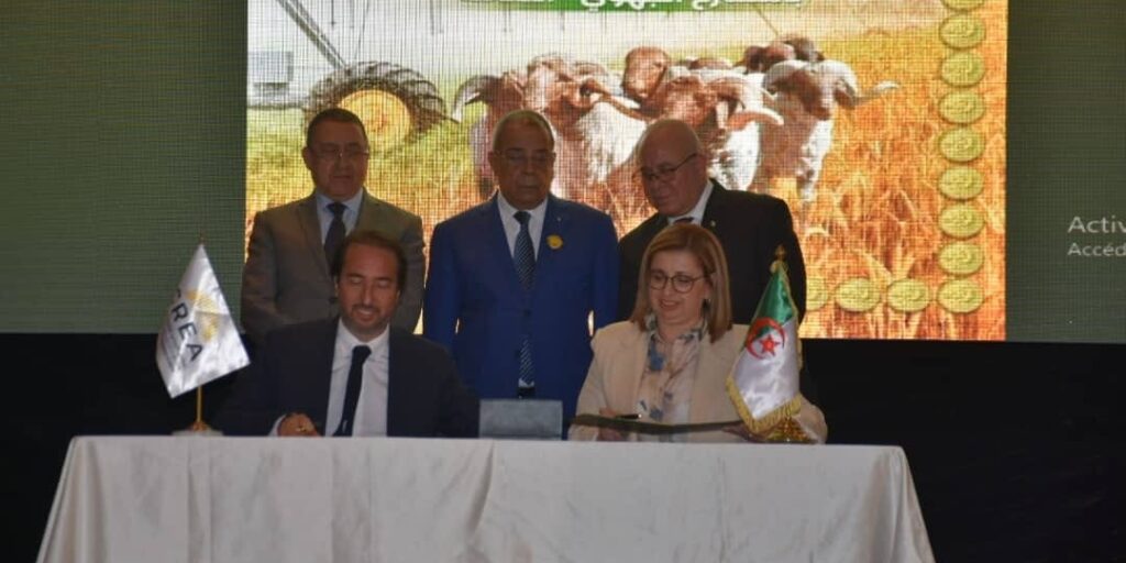 وتم التوقيع على الاتفاقية من طرف المديرة العامة للاستثمار والعقار الفلاحيين بالوزارة, سعاد عسعوس, ورئيس مجلس التجديد الاقتصادي, كمال مولى, وذلك على هامش أشغال الملتقى الوطني حول آفاق الاستثمار في الزراعات الاستراتيجية وتثمين السلالات المحلية للأغنام, المنظم تحت الرعاية السامية لرئيس الجمهورية, السيد عبد المجيد تبون.
