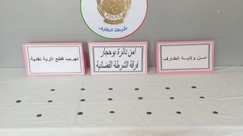 وأوضح البيان، أن حيثيات القضية تعود إلى ورود معلومات لذات المصالح مفادها وجود شبكة إجرامية تنشط في المتاجرة بالقطع النقدية الأثرية بطريقة غير مشروعة عبر إقليم ولاية الطارف وتهريبها إلى دول الجوار عن طريق المناطق الحدودية. وأضاف البيان، أنه بعد الاستغلال الجيد لهذه المعلومات وتكثيف عمليات البحث والتحري لمعرفة أماكن تواجد المشتبه فيهم تم تحديد هوية أحد أفراد الشبكة، مبرزا أن الأمر يتعلق بشخص في العقد الثالث من العمر ينحدر من ولاية الطارف تم توقيفه وبعد تفتيشه تم العثور بحوزته على 19 قطعة نقدية أثرية عبارة عن مسكوكات. وبعد استكمال كافة الإجراءات القانونية بالتنسيق مع النيابة المختصة إقليميا، تم إنجاز ملفات قضائية في حق الشخص الموقوف عن جرم حيازة قطع نقدية أثرية متأتية من أعمال حفر وتنقيب دون إثبات وضعيتها تجاه التشريع الجمركي وتهريب قطع نقدية أثرية قدم بموجبها أمام الجهات القضائية المختصة لدى محكمة بوحجار.