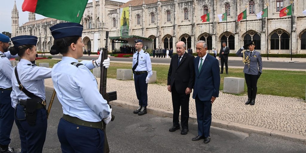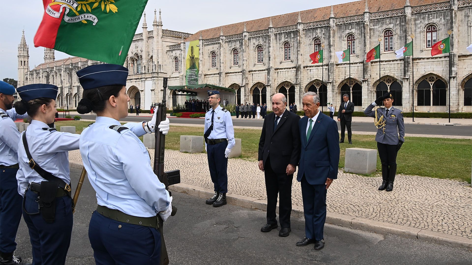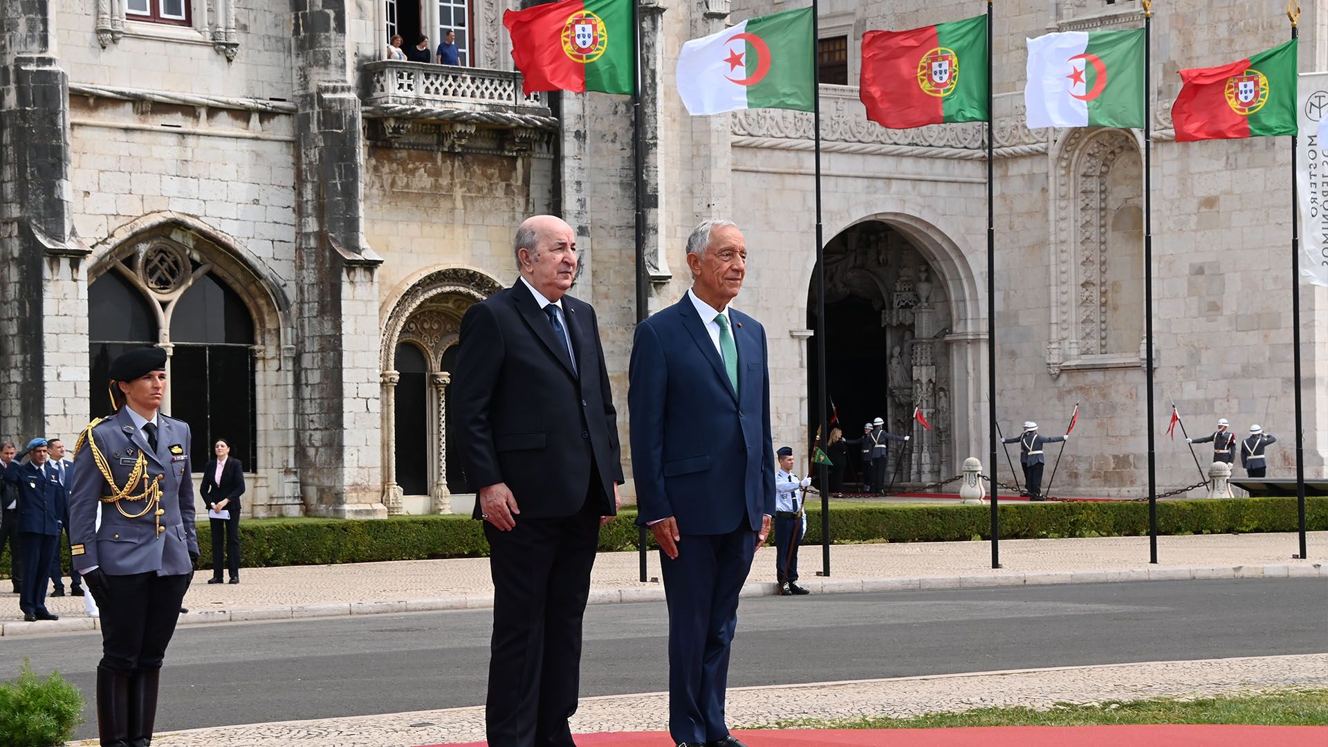خص رئيس الجمهورية, هذا الثلاثاء بالعاصمة البرتغالية لشبونة, باستقبال رسمي من طرف نظيره البرتغالي, السيد مارسيلو ريبيلو دي سوزا, وذلك في إطار زيارة الدولة التي يقوم بها إلى هذا البلد الصديق.
