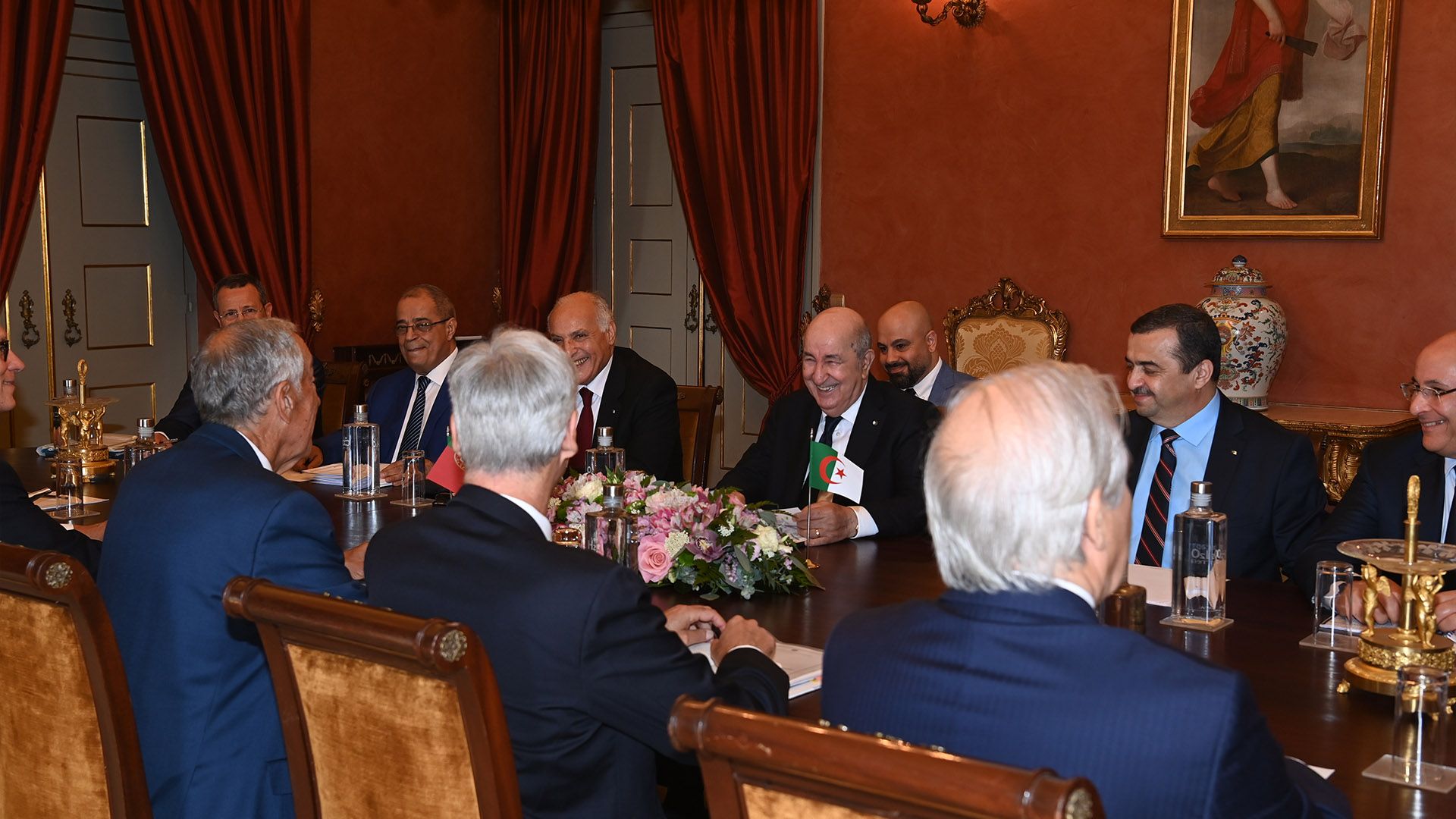 ويتوجه رئيس الجمهورية إلى مقر رئاسة الجمهورية البرتغالية لإجراء محادثات على انفراد مع نظيره البرتغالي, ستتوسع إلى أعضاء وفدي البلدين, كما سيدلي الرئيسان بتصريح صحفي مشترك.