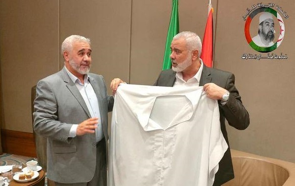 ومن جهته، قدّم نجل الشيخ محفوظ نحناح رحمه الله، صلاح الدين، هدية رمزية لرئيس المكتب السياسي لحركة حمـ.ـاس، إسماعيل هنية تتمثل في عباءة الشيخ محفوظ نحناح رحمه الخاصة “ڨندورة”، حيث ابتهج السيد هنية بهذه الهدية وقال إنها أعظم هدية له.
