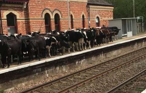 المسيرات والمظاهرات لا تتوقف على البشر فقط على ما يبدو، فقد تجمع قطيع من الأبقار يتخطى عدده 60 بقرة على رصيف القطارات في إحدى محطات السكك الحديدية البريطانية ليربك حركتها تماماً ويتسبب في إلغاء عدد من الرحلات.فقد تعرضت محطة السكك الحديدية لمدينة “كينت” البريطانية لحالة شلل تام بسبب “اعتصام الأبقار” على الرصيف ورفضهم التزحزح عن موقعهم، مما تسبب في إعاقة الركاب من النزول أو الصعود للقطارات وبالتالي تم إلغاء هذه الرحلات تماماً حتى قررت الأبقار بعد عدة ساعات التحرك من الرصيف واستكمال جولاتها في بساتين المدينة.