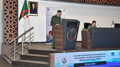 أشرف العميد رئيس اللجنة الوزارية المشتركة المكلفة بتطبيق اتفاقية حظر الأسلحة الكيميائية، الخميس، على مراسم افتتاح يوم العرض الخاص بتجهيزات الحماية والتطهير والكشف عن الأخطار النووية والإشعاعية والبيولوجية والكيميائية والمتفجرات، وذلك على مستوى نادي الموقع للجيش بعين النعجة بالناحية العسكرية الأولى.