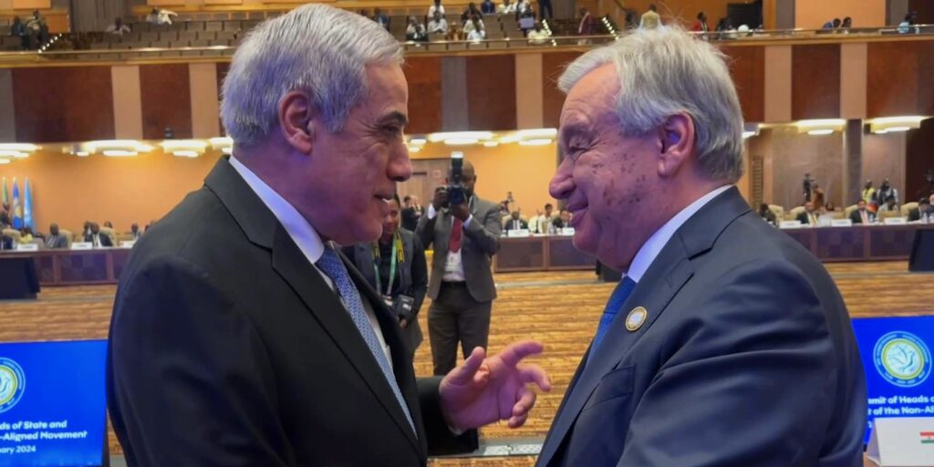 حمّل الأمين العام لمنظمة الأمم المتحدة، السيد أنطونيو غوتيريش، الأحد، بالعاصمة الأوغندية كمبالا، الوزير الأول، السيد نذير العرباوي، نقل تحياته وتقديره البالغ إلى رئيس الجمهورية، السيد عبد المجيد تبون.