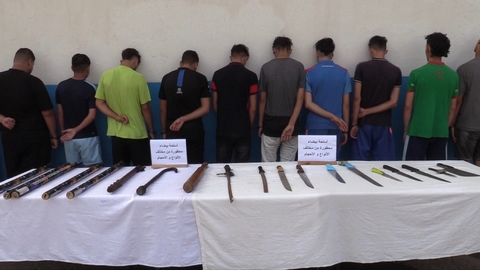 انتقلت عناصر الفرقة المتنقلة إلى عين المكان اثر هذه المكالمة ، أين تم” توقيف 15 شخص مشتبه فيه، مع ضبط وحجز 11 سلاح أبيض من مختلف الأنواع والأحجام و3 عصي وألعاب نارية”.