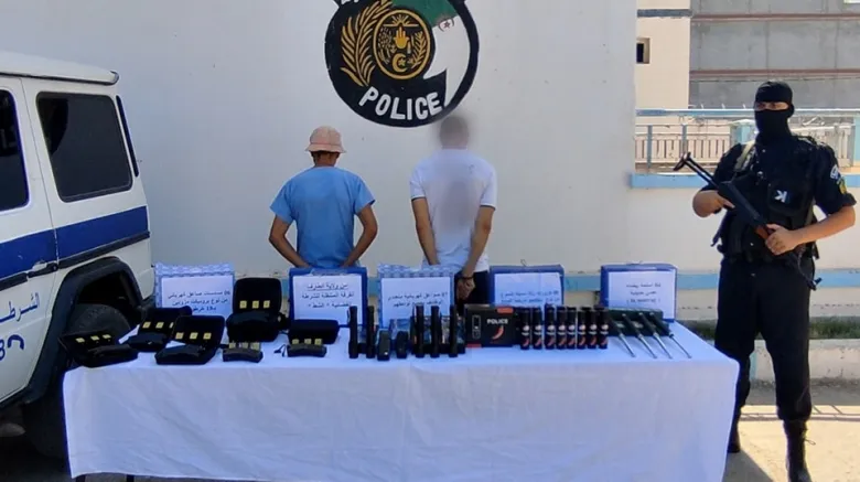 وكشف بيان للأمن الوطني، أن العملية مكنت من ضبط وحجز مجموعة معتبرة من مختلف الأسلحة البيضاء المحظورة، إضافة لتوقيف شخصين في العقد الثاني من العمر ينحدران من ولاية سطيف، وتشمل المحجوزات في 6 مسدسات صاعق كهربائي و18 خرطوشة خاصة بها، إضافة إلى 7 صواعق كهربائية متعددة الوظائف، وكذا 8 قارورات رذاذ مسيلة للدموع و4 عصي حديدية. كما أضاف البيان، إلى أنه وبعد الانتهاء من جميع إجراءات التحقيق، تم إنجاز ملفات قضائية ضدهم، عن حيازة أسلحة بيضاء، محظورة بدون مقتضى شرعي لغرض البيع بطريقة غير مشروعة.