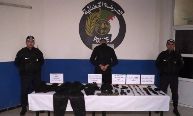 العملية مكنت من حجز 02 أسلحة مقلدة، 03 أجهزة راديو لاسلكي، 09 أسلحة بيضاء محظورة،بطاقة مهنية مزورة/ ختم مستطيل مزور، منظار من الحجم صغير، قناع / بزّة / قبّعة / حزام / صدرية واقية / غمدان.