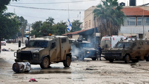 وفي مخيم عين السلطان قرب مدينة أريحا اقتحمت آليات عسكرية منازل فلسطينيين وسط اندلاع مواجهات مع عدد من السكان.