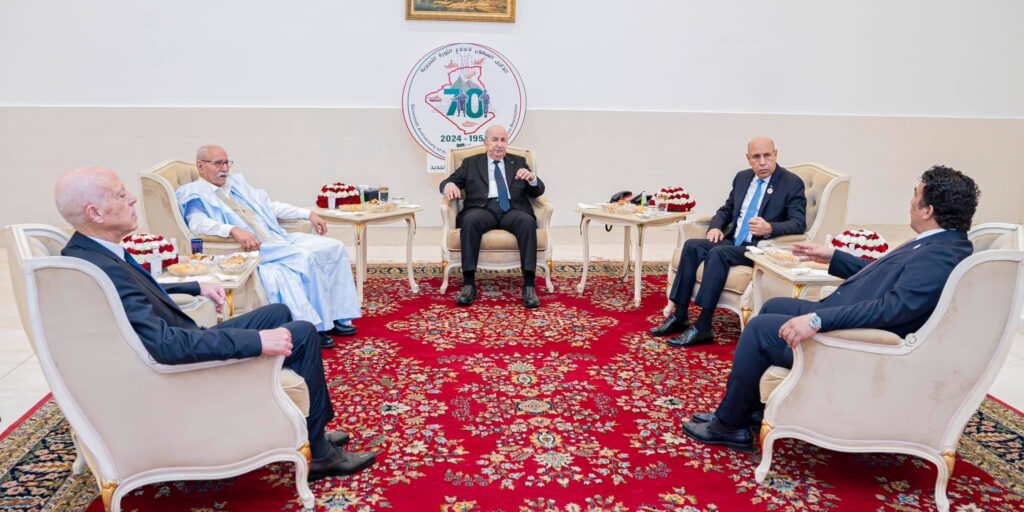 ويتعلق الأمر بكل من رئيس الجمهورية التونسية، السيد قيس سعيد، ورئيس الجمهورية الإسلامية الموريتانية، السيد محمد ولد الشيخ الغزواني، ورئيس المجلس الرئاسي الليبي، السيد محمد يونس المنفي، ورئيس الجمهورية العربية الصحراوية الديمقراطية، السيد إبراهيم غالي. وقد جرى الاستقبال، قبل بدء الاستعراض العسكري الذي نظمه الجيش الوطني الشعبي بمناسبة إحياء الذكرى الـ70 لاندلاع الثورة التحريرية المجيدة، والذي أشرف عليه رئيس الجمهورية، القائد الأعلى للقوات المسلحة، وزير الدفاع الوطني، السيد عبد المجيد تبون. وفي نهاية الاستعراض، أخذ رئيس الجمهورية صورة تذكارية مع قادة ورؤساء ضيوف الجزائر المشاركين في هذه الاحتفالات.