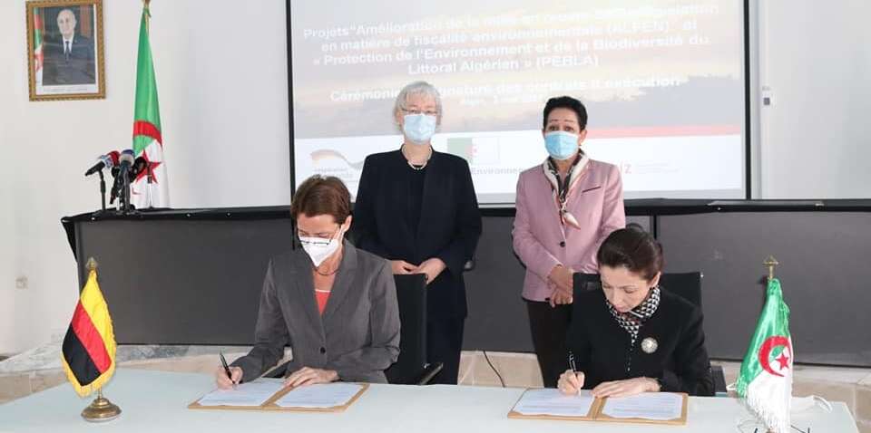 وجرت مراسم التوقيع على هذه العقود بمقر وزارة البيئة، تحت إشراف وزيرة البيئة، دليلة بوجمعة، وسفيرة جمهورية ألمانيا الاتحادية لدى الجزائر إليزابث وولبرز. وبهذه المناسبة، أكدت الوزيرة أن هذين المشروعين مهمان للغاية بالنسبة للجزائر ويجسدان الشراكة والتعاون بين وزارة البيئة والوكالة الألمانية للتعاون الدولي في المجال البيئي، مشيرة إلى أن قيمة المشروع الخاص بحماية البيئة والتنوع البيولوجي في الساحل الجزائري تقدر بـ 6.2 مليون أورو فيما تم تخصيص 4 ملايين أورو لمشروع تحسين التشريع بخصوص الجباية البيئية.