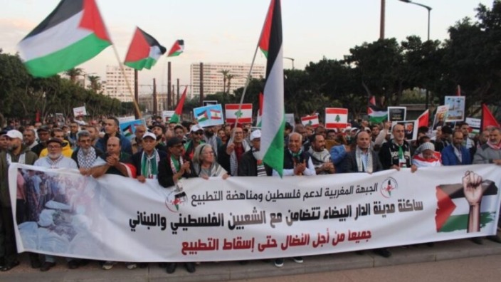 نددت الجبهة المغربية لدعم فلسطين ومناهضة التطبيع بالدار البيضاء بتسخير الموانئ المغربية لمرور السفن نحو إسرائيل، وأعلنت عن خوض إضراب عن الطعام السبت المقبل، ينتهي باعتصام أمام القنصلية الأمريكية.