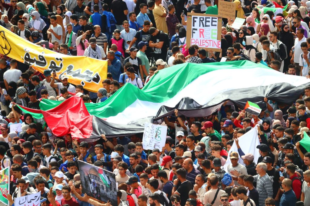 خرج آلاف المواطنين، الخميس، بالجزائر العاصمة، على غرار باقي ولايات الوطن، في مسيرة شعبية حاشدة، تضامنا مع الشعب الفلسطيني الذي يتعرض إلى مجازر وحشية من طرف الكيان الصهيوني الغاشم ولمطالبة المجتمع الدولي بالتدخل العاجل لوقف هذا العدوان الهمجي.