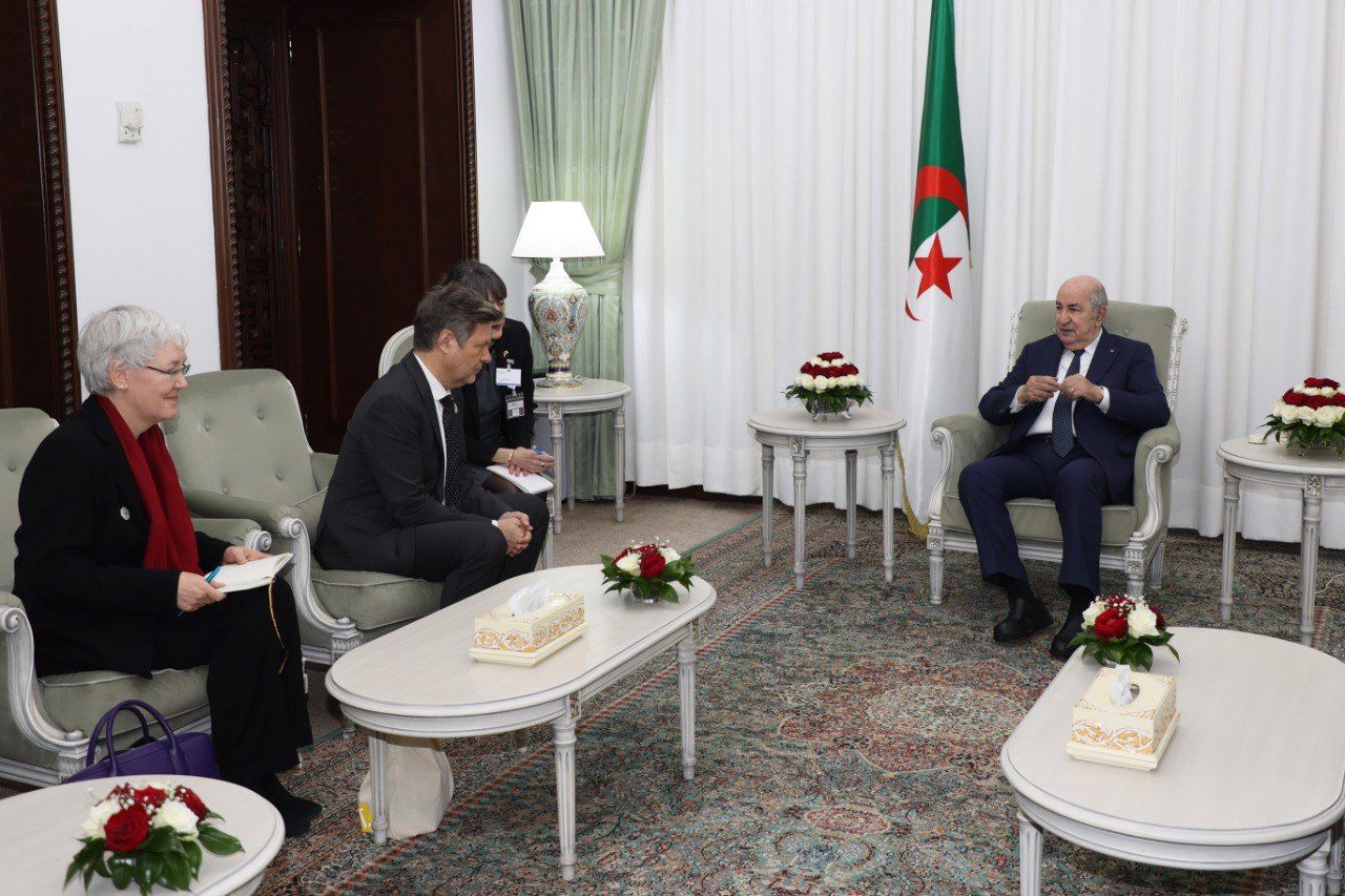 استقبل رئيس الجمهورية، السيد عبد المجيد تبون، الخميس، نائب المستشار ووزير الاقتصاد وحماية المناخ لجمهورية ألمانيا الاتحادية، روبرت هابيك.