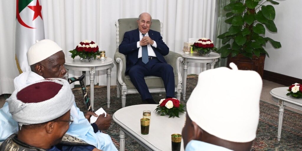 استقبل رئيس الجمهورية، السيد عبد المجيد تبون، مشاركين في الملتقى الدولي “الإمام محمد بن عبد الكريم المغيلي الحوكمة واستقرار المجتمعات الإفريقية ووحدتها” الذي انعقد بالجزائر العاصمة يومي 12 و13 ديسمبر الجاري. ويتعلق الأمر بكل من أمير إمارة “كانو”، السيد أمينو أدو باييرو، ورئيس مؤسسة عثمان باوتشي، السيد إبراهيم طاهر باوتشي، من نيجيريا، ومن السنيغال، خليفة الطريقة التيجانية لمنطقة جنبة، الشيخ سيرين حسان سيك، ورئيس دار القرآن “مريم إنياس”، السيد عمر التجاني، ومن النيجر، سلطان أقاديس، السيد إبراهيم عمرو، وحفيد الإمام المغيلي، رئيس جمعية محمد بن عبد الكريم المغيلي، السيد إبراهيم السعيدن، والشيخ قريب الله ناصر كبرا، شيخ الطريقة القادرية في نيجيريا وغرب إفريقيا، وحفيد الإمام المغيلي، السيد عبد الكريم الشريف علي الشريف، رئيس مؤسسة المغيلي بكانو. وقد عبر الشيخ سيرين حسان سيك لرئيس الجمهورية، خلال اللقاء، عن عرفانه له وللشعب الجزائري بالجميل وعلى حفاوة الاستقبال التي ليست بالغريبة عن الجزائر “أرض الشهداء والأبطال، أرض المليون ونصف المليون شهيد”. وقال “مهما كتب الكاتبون ومهما أرخ المؤرخون فإنهم لايوفون حق الجزائر”، وذكر بأن الجزائر التي “رويت تربتها الطيبة بدماء الشهداء الأبطال الذين قدموا نموذجا فريدا من الدفاع عن الدين والكرامة الإنسانية (…) هي المنبع والمنشأ الأصلي للطريقة التيجانية العالمية”.