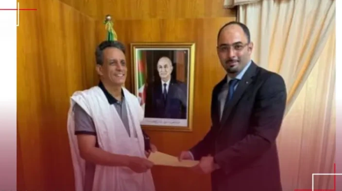 تسلم سفير الجزائر بموريتانيا, أمين صيد, درع تظاهرة “الجزائر عاصمة الثقافة الحسانية لعام 2025” من طرف رئيس الاتحاد العالمي لأدباء الحسانية, الدوه ولد بنيوك.