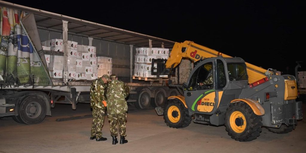 أرسلت الجزائر 200 طن من المساعدات إلى تركيا وسوريا، جراء الزلزال العنيف الذي ضرب البلدين، الإثنين.