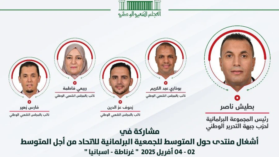 يشارك المجلس الشعبي الوطني، ممثلا في وفد برلماني يرأسه ناصر بطيش، رئيس المجموعة البرلمانية لحزب جبهة التحرير الوطني، في أشغال “منتدى حول المتوسط”.