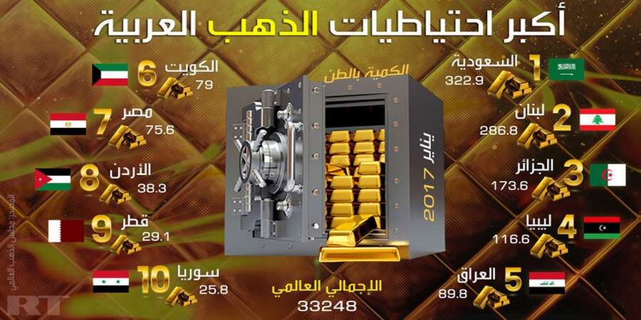 وحسب التقرير الذي كشفت عنه الصحيفة “الاقتصادية” السعودية، الذي اعتمد على بيانات مجلس الذهب العالمي، فإن السعودية تحتل المرتبة الأولى عربيا من حيث احتياطياتها من الذهب بنهاية الربع الثاني من العام الجاري،وذلك من بين 18 دولة عربية لديها احتياطي 323.1 طن، يعادل 24.2 بالمائة، وتليها في المرتبة الثانية لبنان، باحتياطي يبلغ 286.8 طن، يشكل 21.5 بالمائة من احتياطي الذهب العربي، ثم الجزائر باحتياطي يبلغ 173.6 طن، ما يعادل 13 بالمائة، وبعدها ليبيا في المرتبة الرابعة باحتياطي يبلغ 116.6 طن، ويمثل 8.7 بالمائة من احتياطي الذهب العربي، ثم العراق باحتياطي يبلغ 96.3 طن، يشكل 7.2 بالمائة، أما في المرتبة السادسة، جاءت مصر باحتياطي يبلغ 79.5 طن، أي 5.95 بالمائة من احتياطي الذهب العربي، ثم الكويت باحتياطي يصل إلى 79 طنا، وبالمرتبة الثامنة قطر باحتياطي يبلغ 45.3 طن، يشكل 3.4 بالمائة، لتتبعها الأردن باحتياطي يصل إلى 43.5 طن، يعادل 3.3 بالمائة.