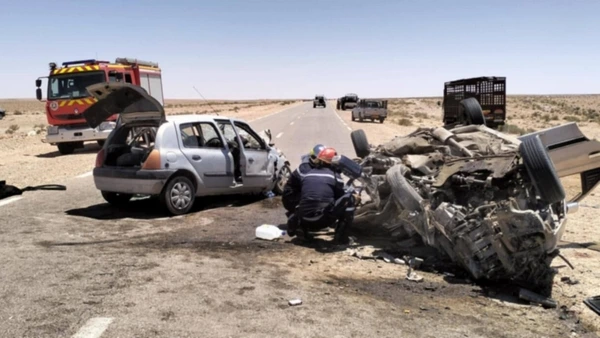 توفي 04 أشخاص وأصيب 04 آخرين في حادث مرور وقع، اليوم الأحد، مستوى الطريق الوطني رقم 01 “بـ ” اتجاه تقرت حوالي 50 كلم عن مدينة مسعد.