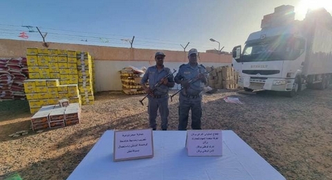 جاء في بيان للمديرية العامة للجمارك، أنه “في سياق النشاط العملياتي المشترك للفرق الجمركية بالتنسيق مع الأجهزة الأمنية، تمكن أعوان الفرقة المتعددة المهام للجمارك برڤان التابعة لمصالح مفتشية الأقسام للجمارك بأدرار، بإقليم اختصاص المديرية الجهوية للجمارك ببشار، على إثر عمليتين متفرقتين تم تنفيذهما بالتنسيق مع كل من أفراد الجيش الوطني الشعبي وعناصر الدرك والأمن الوطنيين، من حجز 17400 لتر من زيت المائدة، 2880 كيلوغراماً من مسحوق الحليب، 11375 كيلوغراماً من الأرز، 5200 كغ من السكر، 11200 كلغ من العجائن، 3600 قارورة ياوورت، 174 صندوق بسكويت، 1120 كيساً من الحلوى و35 صندوقاً من غسول الشعر”. وأشار البيان، إلى أن هذه المحجوزات “تم ضبطها محملة على متن شاحنتين”. وتكرّس العمليتان -بحسب البيان- “تنسيق الجهود الميدانية بين أجهزة الدولة في سبيل حماية الاقتصاد الوطني ومكافحة المضاربة وكافة أشكال التهريب، لا سيما تهريب المواد الاستهلاكية المدعمة وذات الاستهلاك الواسع، حرصاً على استقرار السوق الوطنية وضمان التزويد الدائم والمستمر للمواطن بالسلع الاستهلاكية”.