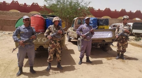 وجاء في البيان أنه “مواصلة لتنفيذ برامج الرقابة الميدانية المشتركة للفرق الجمركية العملياتية مع الأسلاك الأمنية، تمكن أعوان الفرقة المتعددة المهام للجمارك ببرج باجي مختار التابعة لمصالح مفتشية الأقسام للجمارك بأدرار، بإقليم اختصاص المديرية الجهوية للجمارك ببشار، وعلى إثر عملية مشتركة تم تحقيقها بالتنسيق مع أفراد الجيش الوطني الشعبي، من حجز 14 برميلا بسعة 200 ل من المازوت بمجموع إجمالي قدر ب 2800 لتر مع حجز مركبتين رباعيتي الدفع”.