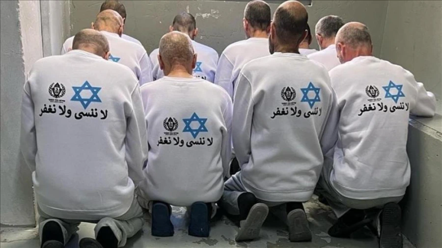 وحملت هذه الملابس عبارة “لا ننسى ولا نغفر”، مصحوبة بالنجمة السداسية شعار دولة الاحتلال، بحسب ما نقلت هيئة البث الصهيوينة. وهذه الخطوة ليست الأولى التي تقوم بها مصلحة السجون الإسرائيلية، موضحة أنه خلال الإفراج عن الدفعات السابقة تم إجبار الأسرى المحررين على وضع سوار نقش عليها شعار مصلحة السجون. وتضمن السوار عبارة “الشعب الأبدي لا ينسى.. أطارد أعدائي وأمسك بهم”، كما أنه تم إجبارهم على مشاهدة فيلم عن الدمار في قطاع غزة. وفي الصور التي تم نشرها، ظهر أسرى فلسطينيون يرتدون تلك السترات، وأشارت وسائل الإعلام إلى أنها التقت بهم داخل سجن “كتسعوت”. وأدانت حركة حماس “جريمة الاحتلال بوضع شعارات عنصرية على ظهور أسرانا الأبطال، ومعاملتهم بقسوة وعنف، في انتهاك فاضح للقوانين والأعراف الإنسانية، في مقابل التزام المقاومة الثابت بالقيم الأخلاقية في معاملة أسرى العدو”.