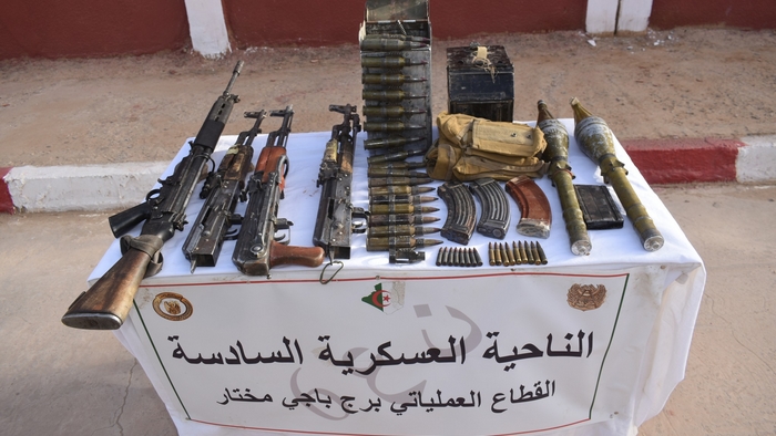ففي “إطار مكافحة الإرهاب وخلال عمليتين نوعيتين بكل من تمنراست وبرج باجي مختار بالناحية العسكرية السادسة, تمكنت مفارز للجيش الوطني الشعبي من استرجاع 4 مسدسات رشاشة من نوع كلاشنيكوف ومسدس (1) آلي وبندقية (1) قناصة وبندقيتين (2) رشاشتين وقاذف (1) صاروخي وكمية من الذخيرة وأغراض أخرى, فيما أوقفت مفارز أخرى 7 عناصر دعم للجماعات الإرهابية, خلال عمليات متفرقة