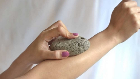 – فرك الحجر الخفاف برفق على البشرة في حركات دائرية.